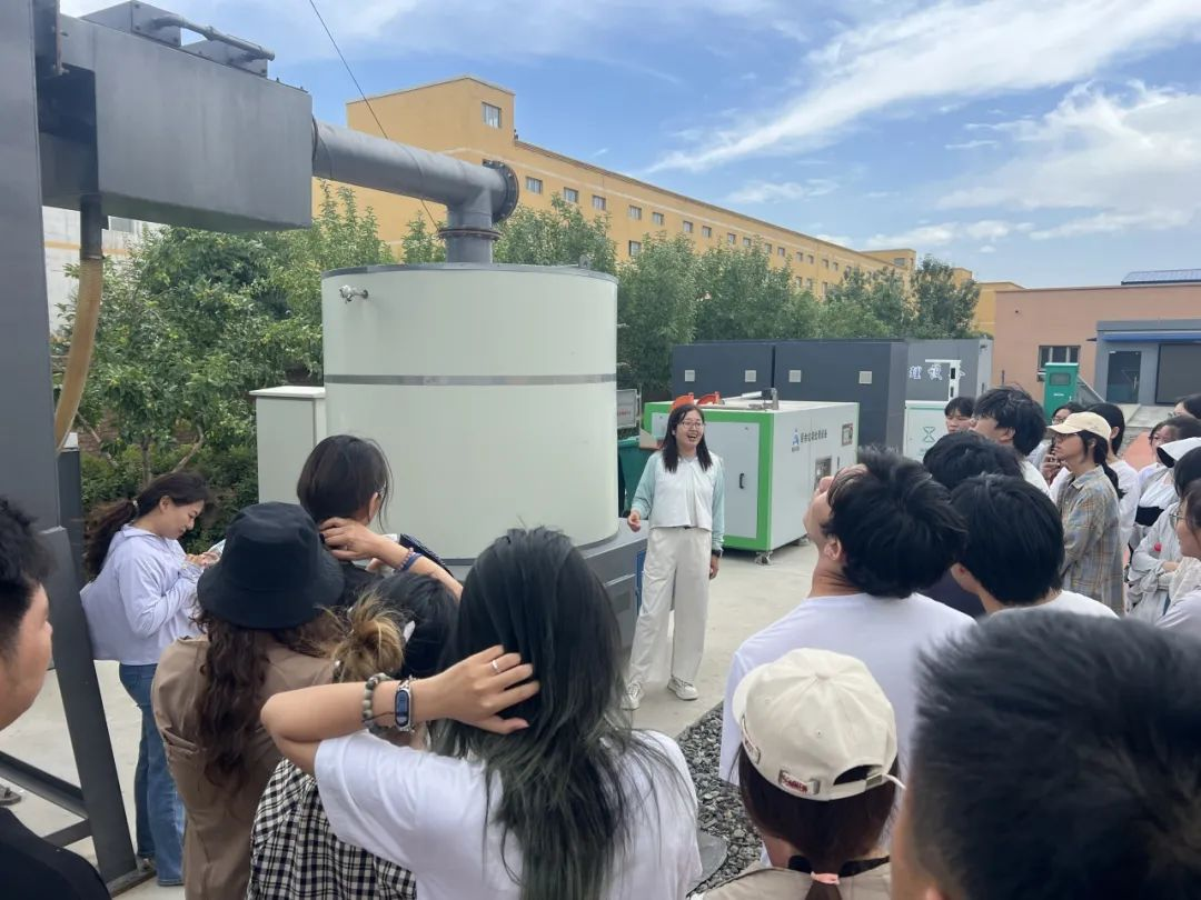 隨后,大家走進(jìn)中試基地,這里是新技術(shù)、新設(shè)備的試驗(yàn)田。凈水處理中試平臺(tái)、工業(yè)污水處理中試平臺(tái)以及高級(jí)催化氧化實(shí)驗(yàn)平臺(tái)等有序分布。在鄉(xiāng)村振興人居環(huán)境整體解決方案展示區(qū),同學(xué)們看到了無水免沖生態(tài)環(huán)保廁所、一站式低溫磁化垃圾處理設(shè)備等實(shí)物。無水免沖生態(tài)環(huán)保廁所不僅節(jié)水,還能將糞水轉(zhuǎn)化為有機(jī)肥;一站式低溫磁化垃圾處理設(shè)備則能使生活垃圾體積大幅減量,處理后的廢氣也能達(dá)到國(guó)家環(huán)保標(biāo)準(zhǔn),有效解決了偏遠(yuǎn)地區(qū)垃圾處理難題。