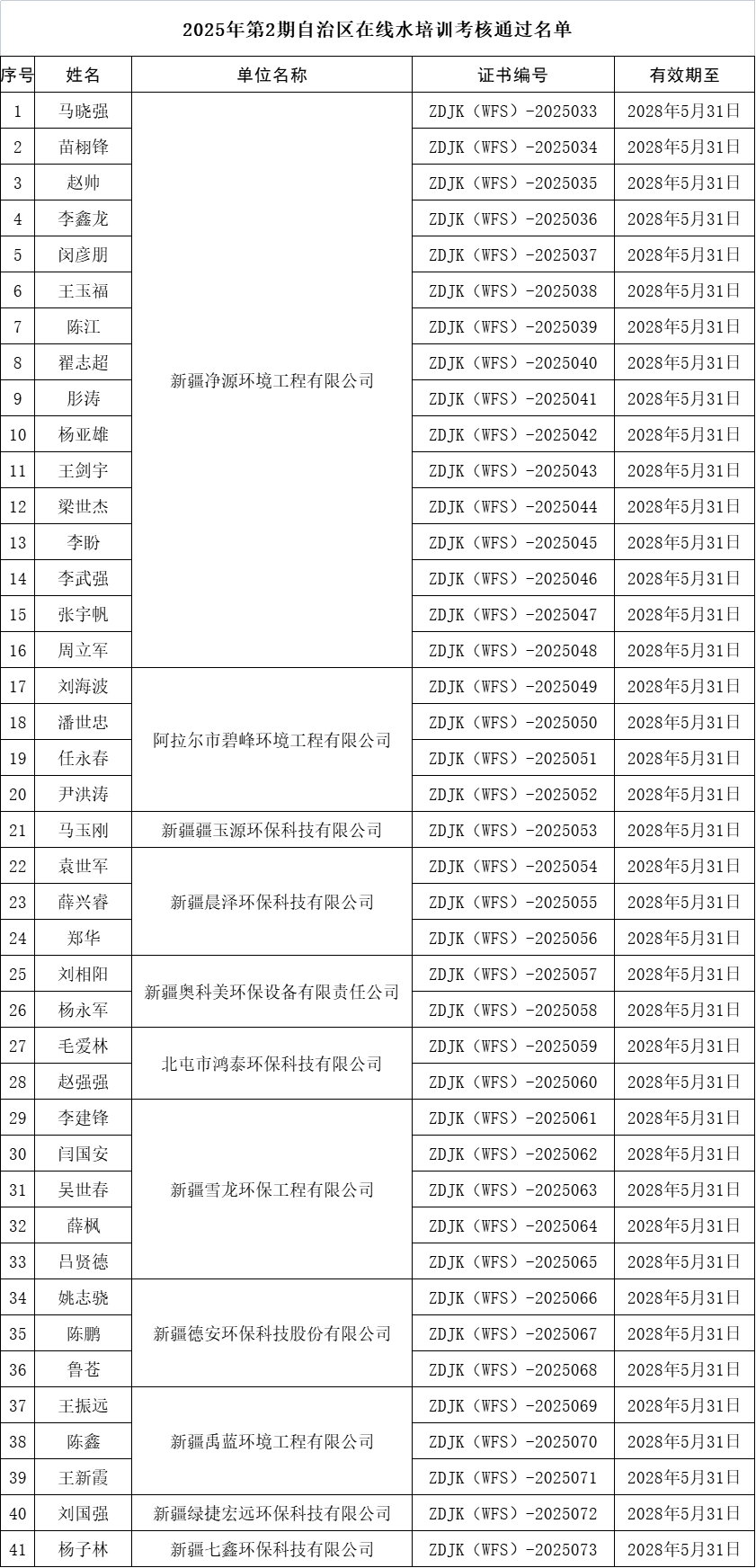 2025年第2期自治區(qū)污廢水連續(xù)自動(dòng)監(jiān)控系統(tǒng)運(yùn)行人員閱卷批卷及考勤梳理工作已完成,現(xiàn)將此次培訓(xùn)考核通過名單公布如下: