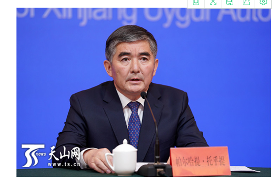 自治區(qū)人大環(huán)境與資源保護(hù)工作委員會主任帕爾哈提•托乎提回答記者提問。