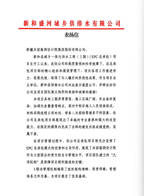 喜報(bào)頻傳!兵團(tuán)設(shè)計(jì)院收獲多封表揚(yáng)信。