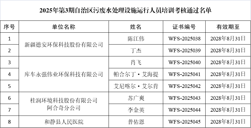 名單公布 | ?2025年第3期自治區(qū)污廢水處理工培訓(xùn)班考核通過名單公布